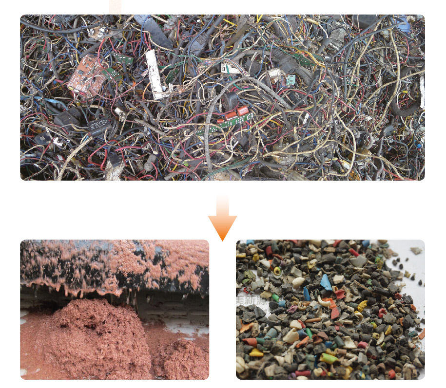 917系列铜米机可将回收的废旧电缆线经过粉碎、浮选、磁选等工序,分离出铜、塑料、铁等。