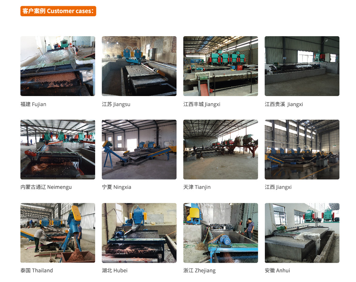 2、生产线可以选配撕碎机、自动给料系统、(铜、塑料)脱水输送机。更加自动化和节省人工。